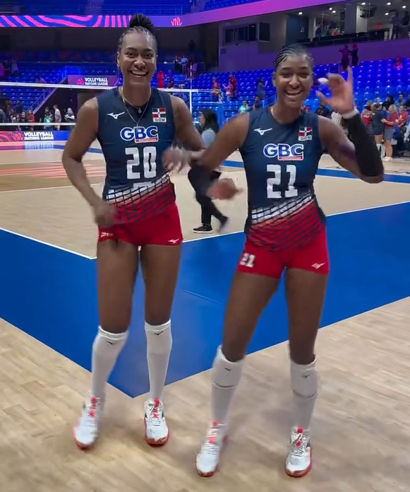 紧接着,多米尼加女排的球员也加入“欢乐联盟”。队员笑得合不拢嘴,在镜头前大方扭动身躯,舞姿大胆奔放,感染力十足,她们身穿红蓝撞色队服,脚步轻盈,仿佛刚刚打完比赛的疲惫一扫而空。