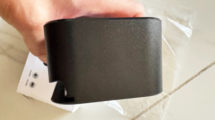 外观上,明镜就是一张高级的镜子,这与它的结构设计有关。机身是规整的方形,立方体构造,六面都是矩形。外壳材质以塑料为主,加了镜面玻璃当门面,颜值很高。因为机身体积适中,单手能够轻松握持,可以将之装进包里,放在案头,用起来没有违和感。小编拿到手的是一台黑色版本,磨砂效果的外壳,一体成型,没有一点缝隙。